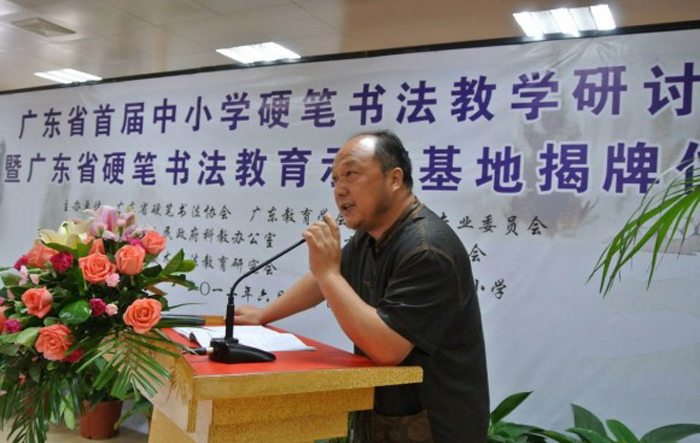 周凤甫在广东省首届中小学硬笔书法教育研讨会上进行发言